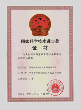 由中国科学院沈阳应用生态研究所作为主要单位参加的“旱作农业关键技术研究与集成应用”项目为国家“九五”、 “十五”和“十一五”重点科技攻关项目成果,获2013年度国家科技进步二等奖。该项目由中国农业科学院主持,全国共十几家单位参加,沈阳生态所排第三名。该奖项的获取巩固和加强了研究所在旱作农业领域的学术地位。