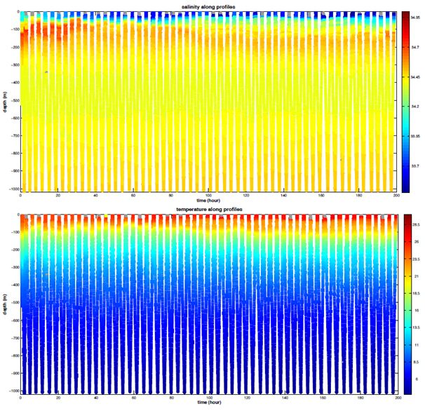 深海滑翔机获得的部分温盐深剖面