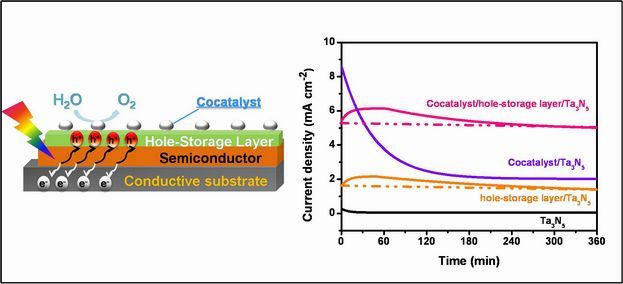 近日,中科院大连化学物理研究所催化基础国家重点实验室及洁净能源国家实验室李灿院士领导的太阳能研究团队在“太阳能光电催化分解水制氢”研究方面取得新进展。在以Ta3N5为基础的半导体光阳极研究中,发现“空穴储存层”电容效应,藉此设计并获得了高效稳定的太阳能光电化学分解水体系,相关研究成果以通讯形式在线发表在近期的《德国应用化学》杂志上(Guiji Liu, Jingying Shi, Can Li, et al., Angew. Chem. Int. Ed., DOI:10.1002/anie.201404697)。
