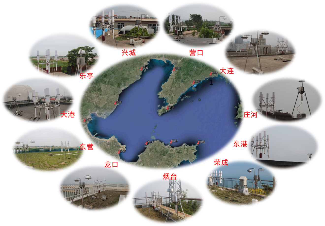 该观测网络北起位于鸭绿江口的东港,南至山东半岛东端的成山头,包括东港、庄河、大连、营口、兴城、乐亭、天津、东营、龙口、烟台和荣成,共11个大气沉降观测站。每个站点包括一台有机污染物沉降采样器和一台生源要素/重金属采样器。此观测网络的构建与长期数据积累对认识渤海—北黄海陆源物质的大气沉降输入通量及其时空演变规律具有积极意义。