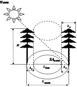 为此,中国科学院沈阳应用生态研究所朱教君研究员的研究团队提出了基于树木在生长季平均投影(光环境)的影响范围,即,树木的平均影长,作为确定林窗上、下限的主要依据。以正午(12:00)树木的投影长度为最小的林窗平均直径(林窗下限)(Fig. 1),以光强超过阳性树种光饱和点时树木的投影长度为最大的林窗平均直径(林窗上限)(Fig. 2),从而客观确定了林窗大小的范围,且具有生态学意义。研究结果为不同林窗研究之间比较和森林近自然经营提供量化指标。