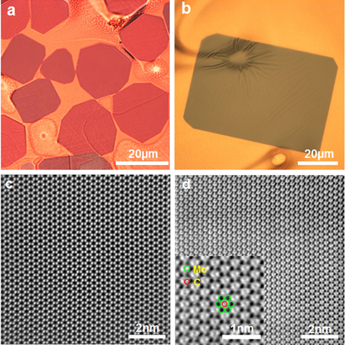 图1 CVD方法制备的大尺寸、高质量二维超薄 -Mo2C 晶体