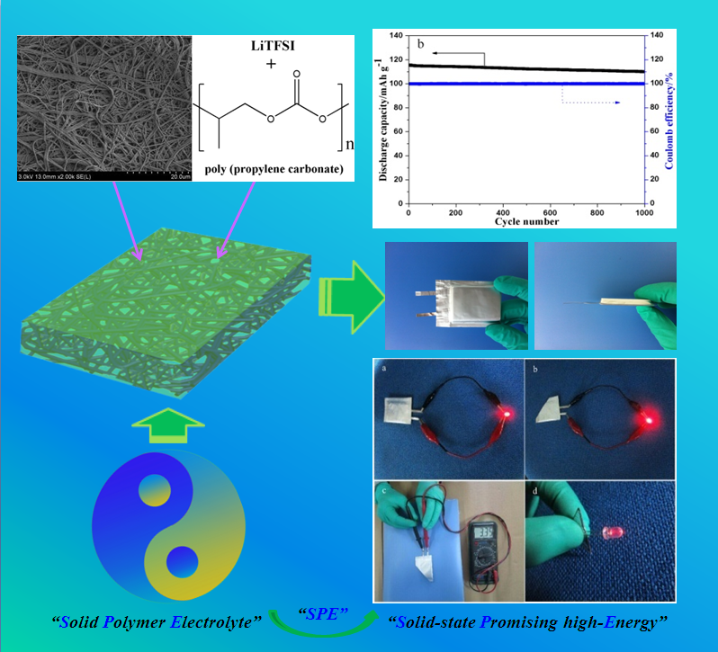 传统的聚丙烯腈的聚合物电解质具有较高的离子导电率优点,但物性较脆加工性能不好,研发团队采用新型的聚合物电解质基体(ACS Appl. Mater. Interfaces, 2015, 7, 4720-4727;Electrochim. Acta 2015, 157, 191-198; Electrochem. Comm. DOI : 10.1016/j.elecom.2015.10.009),结合“刚柔并济”的设计理念,实现了腈基聚合物电解质加工性能等综合性能的提升。