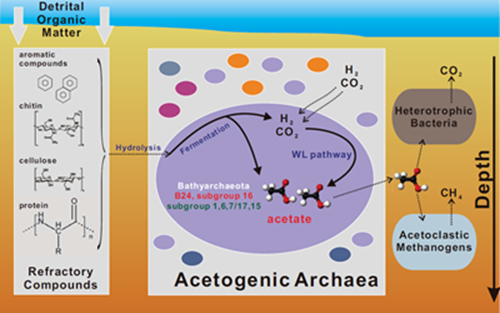 “深古菌”(Bathyarchaeota),是自然界分布非常广泛的一大类未培养古菌,在海洋沉积物中含量最为丰富,并且也是最活跃的类群之一。然而由于“深古菌”细胞生长异常缓慢,体积微小不宜检测,尚未能实验室培养等使得对其研究异常困难,进展非常缓慢,其地球化学和生态学功能几乎未知。上海交通大学王风平教授领导研究团队在发现并命名“深古菌”新门等研究成果的基础上,近期成功解析了“深古菌”部分类群的独特新颖的代谢方式,提出“深古菌”是海洋沉积物中碳循环和生态系统的核心驱动者。该研究成果更新和极大地拓展了对古菌代谢多样性的认识,促使重新思考和理解古菌在深部生物圈的生态地位和功能,同时也为认识早期生命的起源打开了一扇新的窗户。