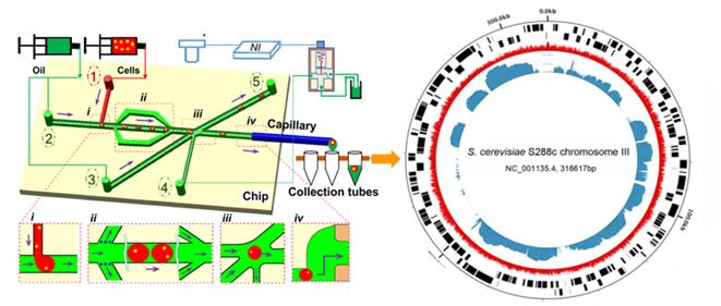 第三,在污染控制方面,FOCOT平台涉及部件少,体积小型化,相对封闭,故在实验过程中,能够方便地实现超洁净环境空间控制、芯片消毒等操作,严格控制环境DNA的污染。对分离获取的单个酵母细胞进行全基因组扩增与测序后结果显示,99%的有效序列可以与参考基因组匹配,表明该方法能有效避免环境中微生物带来的DNA污染,平均基因组覆盖率达到43.3%,与在昂贵的超净空间设施中采用FACS等大型仪器系统分离获取单细胞所获得的测序结果相当。