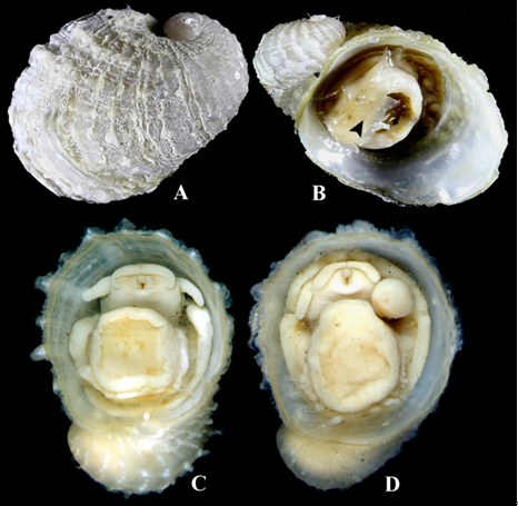 海洋研究所张树乾博士和张素萍研究员在对2015年中科院海洋先导专项马努斯热液航次采集的腹足类标本进行整理时,发现了形态特征特别的脐螺科Neomphalidae标本,其附着在黑色岩石上,形状如帽贝,但早期壳层仍保留着螺旋状,后足上具退化的厣,这些特征与同科其它属的特征存在明显差异,为脐螺科动物由螺旋状向帽贝状演化的中间过渡类型。据此建立了一新属:片脐螺属Lamellomphalus Zhang & Zhang, 2017;记述了一新种:马努斯片脐螺Lamellomphalus manusensis Zhang & Zhang, 2017。该研究成果近期在贝类分类学杂志(The Nautilus, 2017, 131: 76–86)正式发表。脐螺科为深海热液区特有类群,主要分布在东太平洋隆起、加拉帕戈斯、劳盆地以及马里亚纳弧后盆地,目前全世界已发现6属9种。