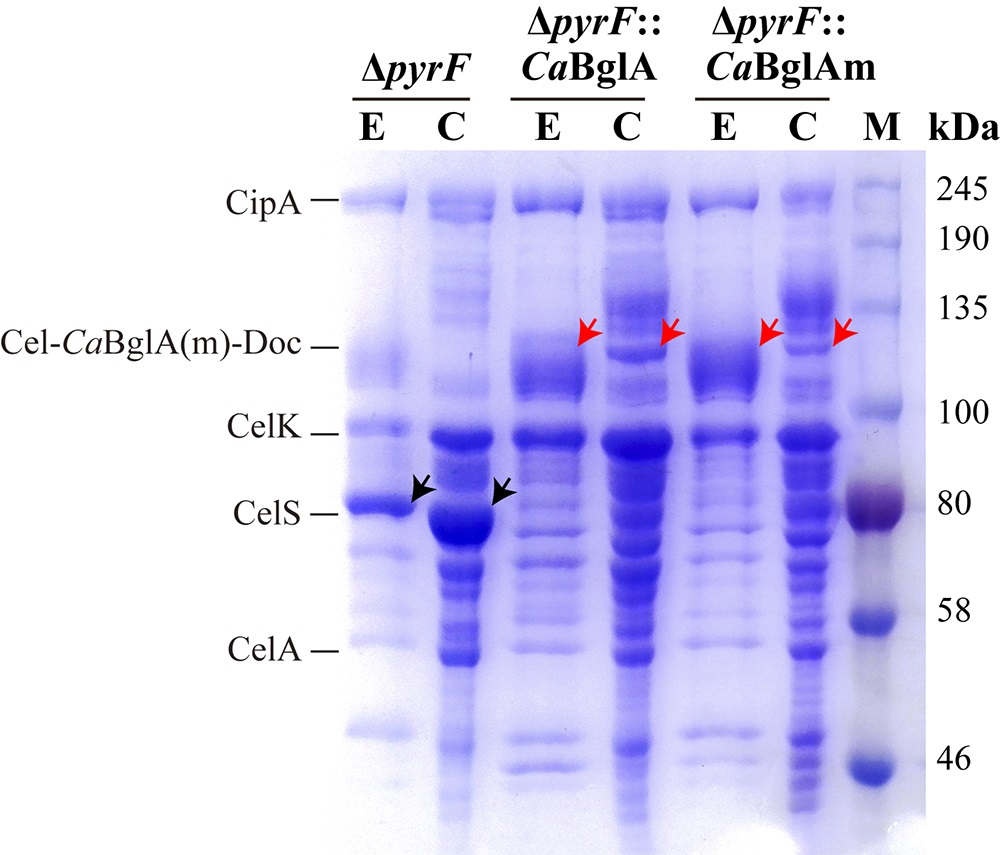 纤维小体是目前已知自然界中最高效的纤维素降解分子机器之一,作为典型的产纤维小体菌株,热纤梭菌(Clostridium thermocellum)具有天然高效降解纤维素底物的特性,因此被认为是最有前景的可以通过整合生物加工技术的策略实现木质纤维素基高效生物催化转化的菌株。然而,已有的野生菌株及其纤维小体存在底物水解活力受酶催化产物的反馈抑制等不足之处,不能适应工业化的要求。
