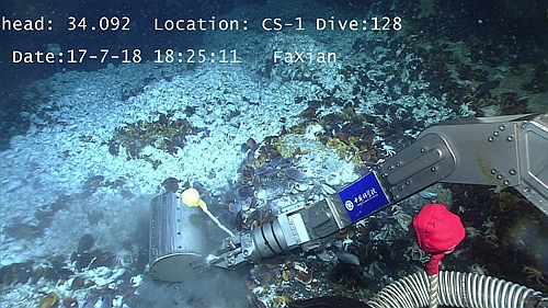 “发现”号机械手采集生物样品