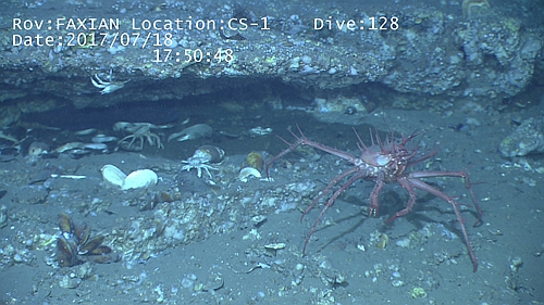 15点50分,“发现”号ROV离开甲板,开始了本航次首次海底探秘之旅。21点55分,“发现”号ROV携带大量深海偏顶蛤和铠甲虾等生物样品回到甲板,ROV作业顺利完成。