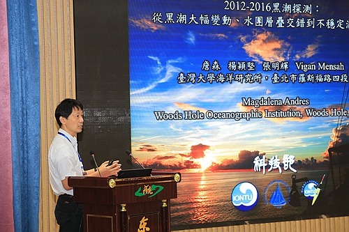 大会特邀学术报告会由王凡研究员和詹森教授分别主持。11个主题报告分别为:中国海洋大学吴立新院士的“Western Boundary Currents in Changing Climate”、台湾大学詹森教授的“2012-2016 黑潮探测:从黑潮大幅变动、水团层叠交错到不稳定波列现象”、国家海洋局二所陈大可院士的“关于大洋观测系统的几点思考”,中国科学院海洋研究所孙松研究员的“海洋生态系统的可预测性与不确定性”,台湾中央研究院何东垣研究员的“气胶金属在西北太平洋的生物地球化学”,中国科学院海洋研究所孙卫东研究员的“夏威夷-帝王岛链与太平洋漂移历史”,台湾大学刘家瑄教授的“海床流体移栖及冷泉系统的地球物理观测”,香港科技大学刘红斌教授的“黑潮及北太平洋单细胞固氮蓝藻的高度多样性”,国家海洋局二所白雁研究员的“海洋碳通量遥感观测”,台湾海洋大学蒋国平研究员的“混营性微细鞭毛虫(Mixotrohpic nanoflagellates)的摄食机制-以著鞭毛虫(Haptophytes)为例”,厦门大学史大林研究员的“海洋酸化对优势固氮蓝藻束毛藻的影响”。