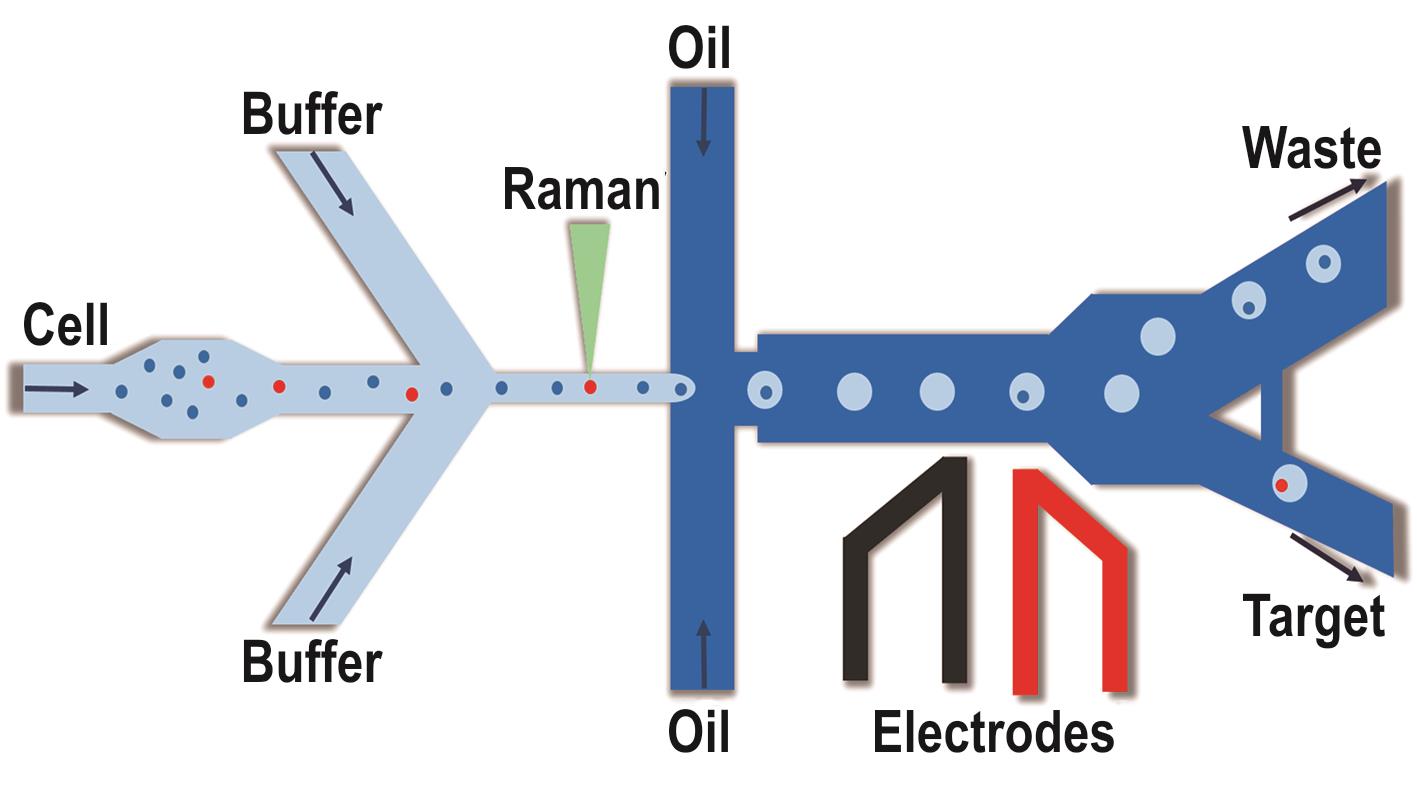 图1 拉曼激活单细胞液滴分选(RADS)系统示意图
