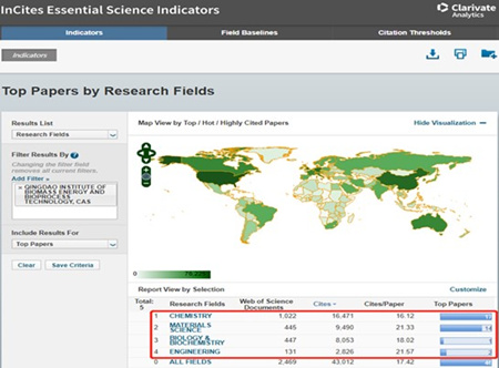 今年1月,基本科学指标数据库(Essential Science Indicators,简称ESI)公布的最新数据显示,我所工程科学(Engineering)学科进入ESI全球前1%学科序列。此前,我所已经有化学(Chemistry)、生物与生化(Biology & Biochemistry)、材料科学(Materials Sciences)3个学科进入ESI全球前1%学科序列。