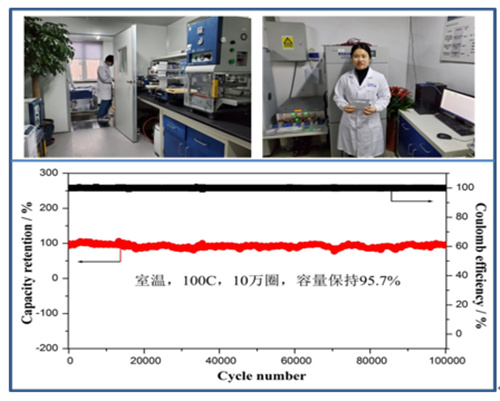 目前,以青岛能源所为依托,在武建飞研究员和孙晓林高级工程师等人的共同努力下,先进储能材料与技术研究组通过开发高容量和高倍率的正负极核心材料,负极可控工业化预嵌锂关键技术、可修复高稳定性负极表面SEI膜的构建,先进的高效电荷传输的正负电极制备技术以及可控的穿孔集流体设计技术等,成功研制出长循环寿命的碳基锂离子电容器单体。其单体实际容量780F,高倍率(100C)循环10万圈容量仍然保持95.7%以上(专利CN202011465356.4;CN202011465546.6)。
