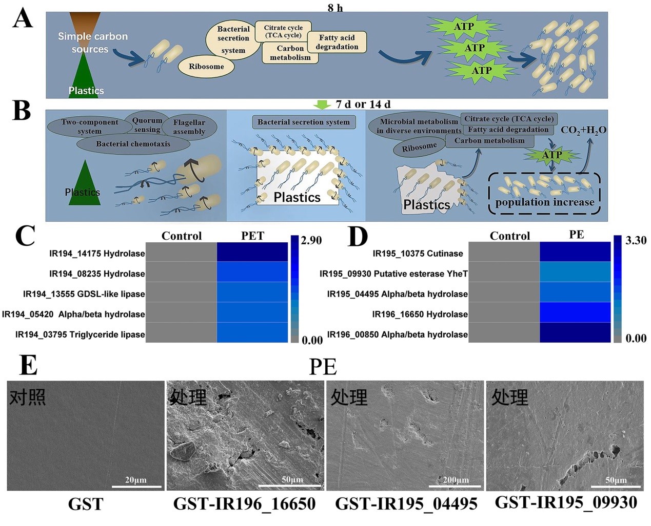 基于菌群纯培养的3个细菌能单独降解PET和PE塑料