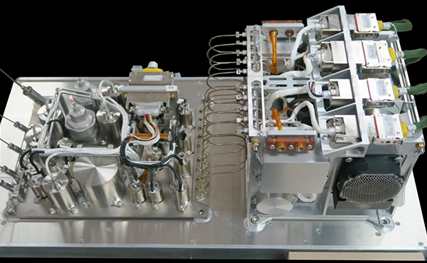 双通道气相色谱仪是空间站环控生保分系统的重要部组件,用于舱内空气中微量挥发性有机物的在线监测。其双通道独立工作,一次采样可同时分析50多种有机组分,也可与质谱仪联用,是保障航天员在轨安全生存不可或缺的产品。