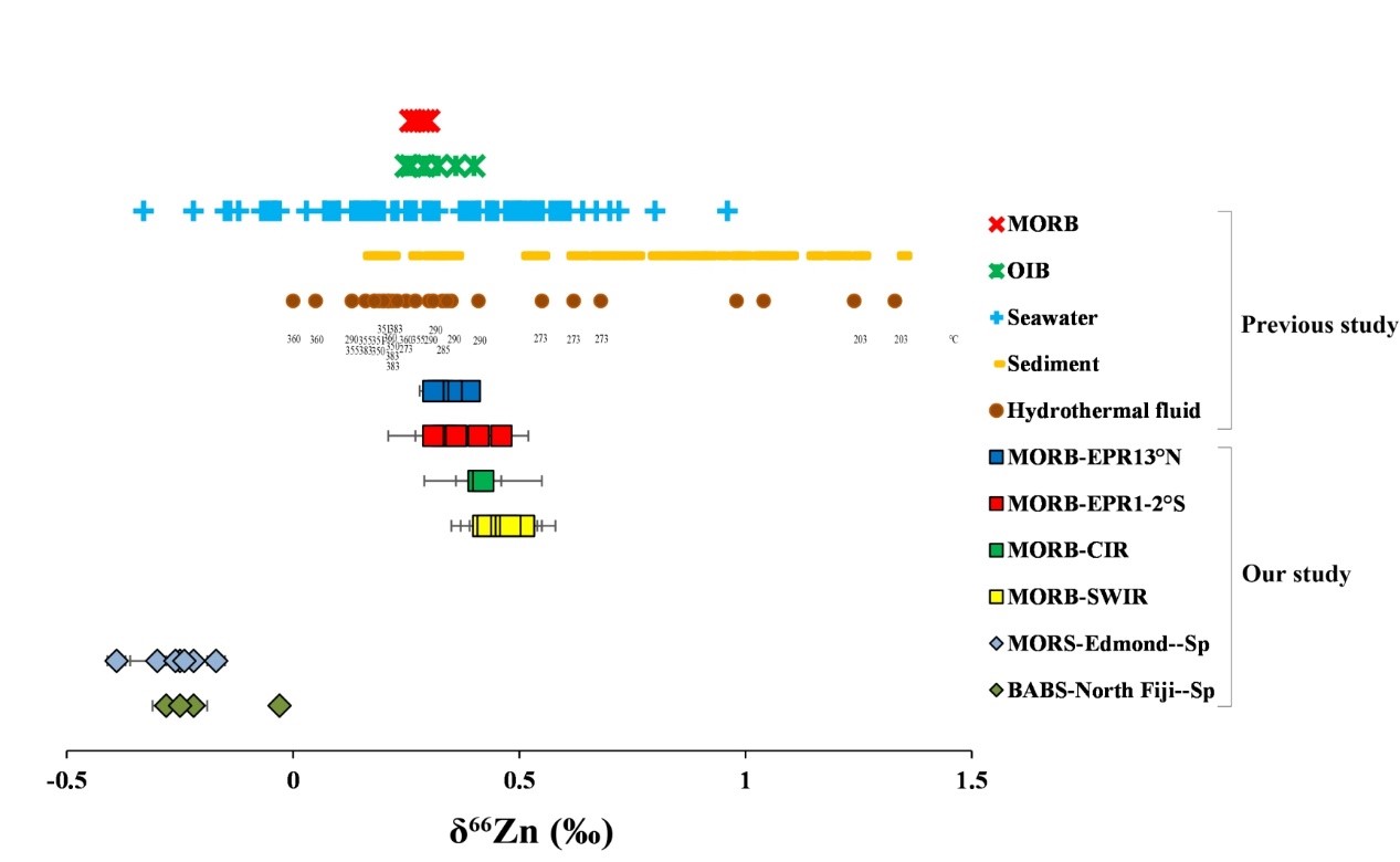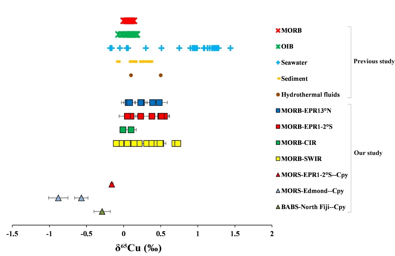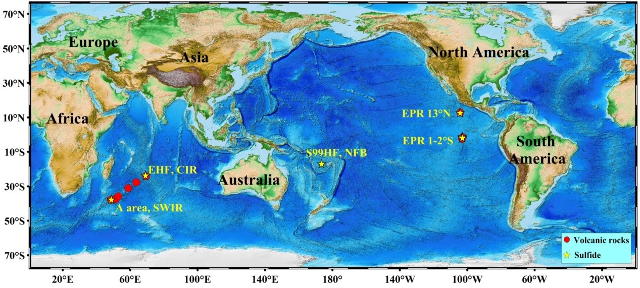 近日,国际学术期刊Marine Geology刊发了题为“Iron, copper and zinc isotopic fractionation in seafloor basalts and hydrothermal sulfides”的文章,报道了中科院海洋地质与环境重点实验室曾志刚研究团队与比利时布鲁塞尔自由大学和英国国家海洋中心的合作研究成果,分析了东太平洋海隆、印度洋脊和西太平洋弧后盆地中玄武岩和硫化物的铁、铜和锌同位素组成。