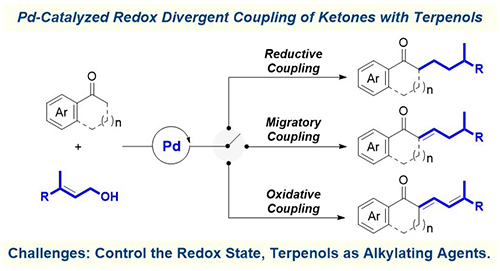 相关研究于近日以题为“Pd-Catalyzed Redox Divergent Coupling of Ketones with Terpenols”发表在ACS Catalysis上。该工作的第一作者是大连化物所博士研究生赵朝阳。上述工作得到国家自然科学基金等项目的资助。