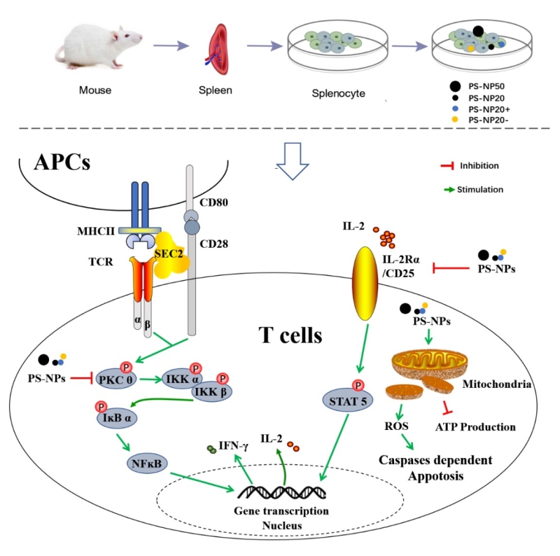 纳米塑料作为一种新型环境污染物在自然界中广泛存在,目前尚无有效的检测和消除手段。纳米塑料容易随着饮食和呼吸途径进入人和动物体内,并影响其生理功能。免疫细胞作为机体抵御外来抗原的重要防线,容易受到纳米塑料的攻击,但目前尚未有关于纳米塑料对哺乳动物免疫系统毒性作用的研究报告。