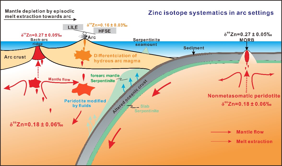 该项研究表明Zn同位素可以有效区分板片蛇纹岩和地幔楔蛇纹岩脱水对岛弧岩浆的影响,为弧前地幔楔蛇纹岩可以被卷入俯冲通道进入弧下深度,进而脱水改造弧下地幔楔的假说提供了确凿的证据。