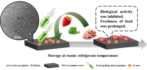 近期,中国科学院金属研究所师昌绪先进材料创新中心前沿材料研究部杨柯研究员带领的团队在含铜抗菌不锈钢的食品保鲜功能方面取得了创新研究进展,对发展新型结构/功能一体化的食品接触金属材料起到了重要引领作用。相关研究成果分别以“New strategy to delay food spoilage: Application of new food contact material with antibacterial function(延缓食品腐败的新策略:具有抗菌功能的新型食品接触材料的应用)和“Novel Cu-bearing stainless steel: a promising food preservation material(新型含铜不锈钢:一种有前景的食品保存材料)为题发表在Journal of Materials Science & Technology上。