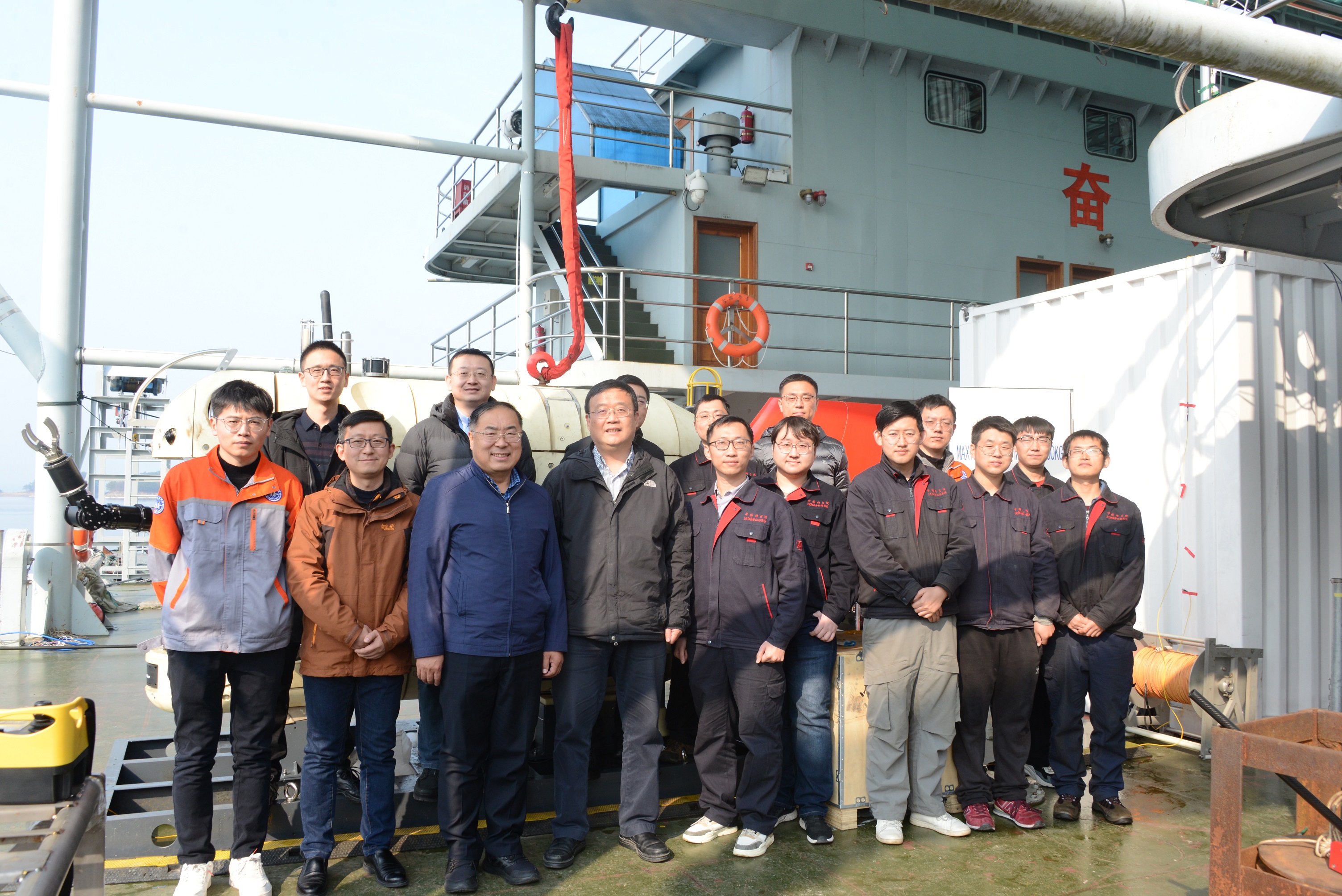 中国地质调查局青岛海洋地质研究所党委书记赵洪伟、沈阳自动化所副所长李硕等与试验团队合影