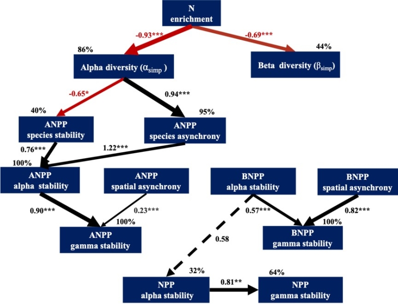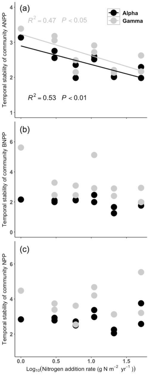 生产力的稳定性事关生态系统向人类社会提供服务的可持续供给。以往研究多关注地上生产力的稳定性,而对地下生产力以及总生产力的稳定性的变化规律和内在机制缺乏了解。人类活动导致陆地生态系统的活性氮沉降量显著增加,厘清总生产力稳定性对氮沉降的响应规律对于预测生态系统服务的变化非常重要。