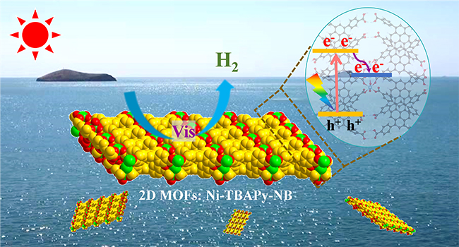近日,中国科学院大连化学物理研究所宽光谱捕光材料与光催化创新特区研究组研究员章福祥等人在新型宽光谱捕光催化剂研发中取得新进展,设计合成了一种新结构的Ni-MOFs单晶,并将其剥离成纳米带。该新型催化剂具有宽光谱的可见光吸收,较好的水稳定性,以及可以在无助催化剂条件下展示出优秀的光催化水分解半反应制氢性能等,其可见光制氢表观量子效率达到8.0%。