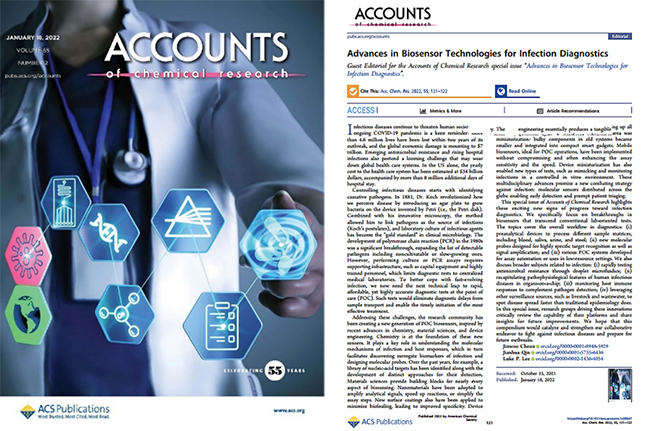 近日,由中国科学院大连化学物理研究所微流控芯片研究组研究员秦建华和美国哈佛大学医学院教授Luke P. Lee等共同主编的学术专刊“Advances in Biosensor Technologies for Infection Diagnostics”在Accounts of Chemical Research上正式出版。秦建华等为该专刊撰写了编者按。