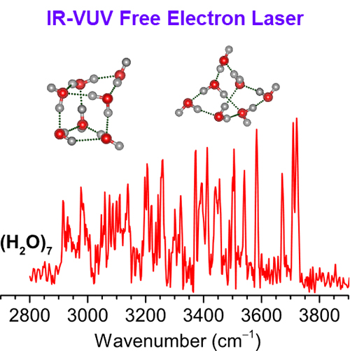液态水和冰之间的互相转换是一种普遍存在的自然现象。然而,由于液态水和冰内部的动态氢键变化非常迅速且难以控制,精确解析液态水到冰的形成机制仍是一个科学难题。研究水分子如何一步步成长为水分子团簇、液态水和冰的过程,对理解冰的微观结构和形成机制至关重要。红外光谱是研究物质结构的最有效方法之一。与离子团簇不同,中性水团簇由于缺乏电荷、难于探测而实验研究甚少,因此,实现质量选择的中性水团簇的红外光谱研究是科学家们长期以来的梦想。