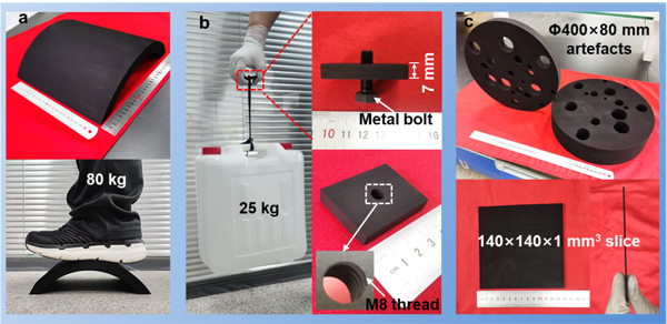 图1. 轻质碳基复合材料表现出优异的承载能力、抗剪切能力以及大尺寸成型能力