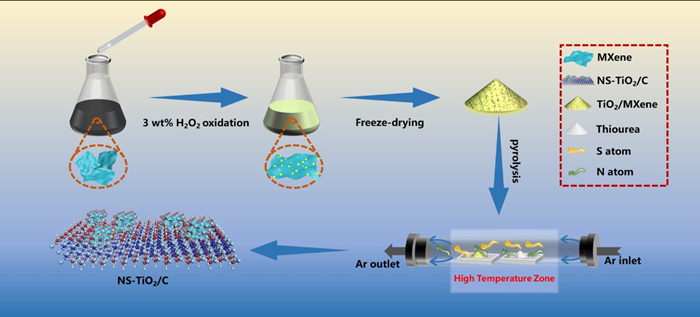 图1. NS-TiO2/C纳米催化剂制备流程图