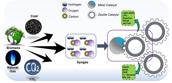 当前,在“双碳”时代背景下,实现C1小分子的高效催化转化,可提升碳资源的利用效率,同时为社会经济发展提供必要的燃料和化学品。在上述转化过程中,普遍存在多种串联催化过程,以金属或金属氧化物与分子筛耦合而成的双功能复合催化体系,可有效驱动该过程的高效进行,是近年来的研究热点。
