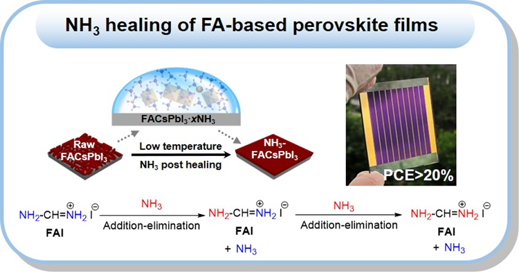 图1. 甲脒基钙钛矿薄膜的修复机理