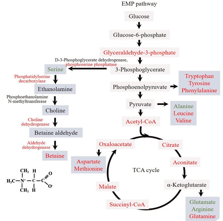 图1. 嗜盐古菌甘氨酸甜菜碱生物合成途径