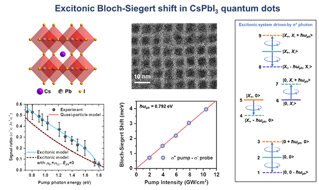 近日,中国科学院大连化学物理研究所光电材料动力学研究组研究员吴凯丰与朱井义副研究员团队在胶体量子点超快光物理研究中再获新进展,观测到CsPbI3量子点在红外飞秒脉冲作用下的布洛赫—西格特位移,并揭示了激子效应对相干光学位移的调制作用。