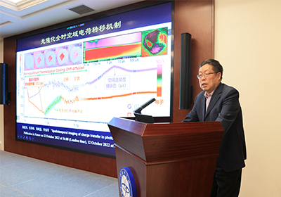10月12日,大连化物所举行“大连化物所首次‘拍摄’到纳米颗粒光催化剂光生电荷转移演化全时空图”集中采访会。会议采取线上线下相结合的模式,由大连化物所副所长王峰主持。包括新华社、中央电视台、中央人民广播电台、中国国际广播电台、光明日报、经济日报、中国日报、科技日报、中国新闻社、中国青年报、人民网、中国网、瞭望、中国科学报、中国能源报、北京日报、新京报、辽宁电视台、上海文汇报、解放日报等媒体记者参加了会议。