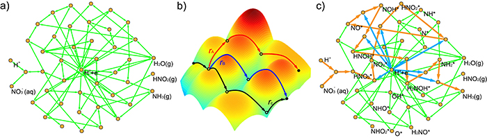 肖建平团队在前期的工作中开发了基于图论的反应网络研究新型算法(ACS Catal.,2021),以“理论先行”设计了铜基催化剂应用于一氧化氮电催化合成氨(Angew. Chem. Int. Ed., 2020)。团队基于电催化动力学模型,解释了电极电势对一氧化氮电催化产物选择性的影响(J. Phys. Chem. Lett.,2021)。系列成果在团队关于氮氧化物(NOx)电催化合成氨的综述文章中进行了详细阐述(ChemPlusChem,2021)。