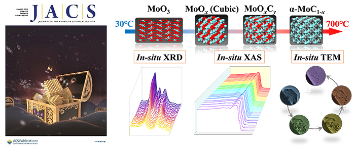 相关成果以“In-situ Investigations on Structural Evolutions during the Facile Synthesis of Cubic -MoC1-x Catalysts”为题,于近日发表在《美国化学会志》(J. Am. Chem. Soc.)上,并被选为封面论文(Supplementary cover)。该文章的第一作者是大连化物所博士研究生孙兴涛。该工作得到国家自然科学基金、辽宁省兴辽英才计划等项目的支持。