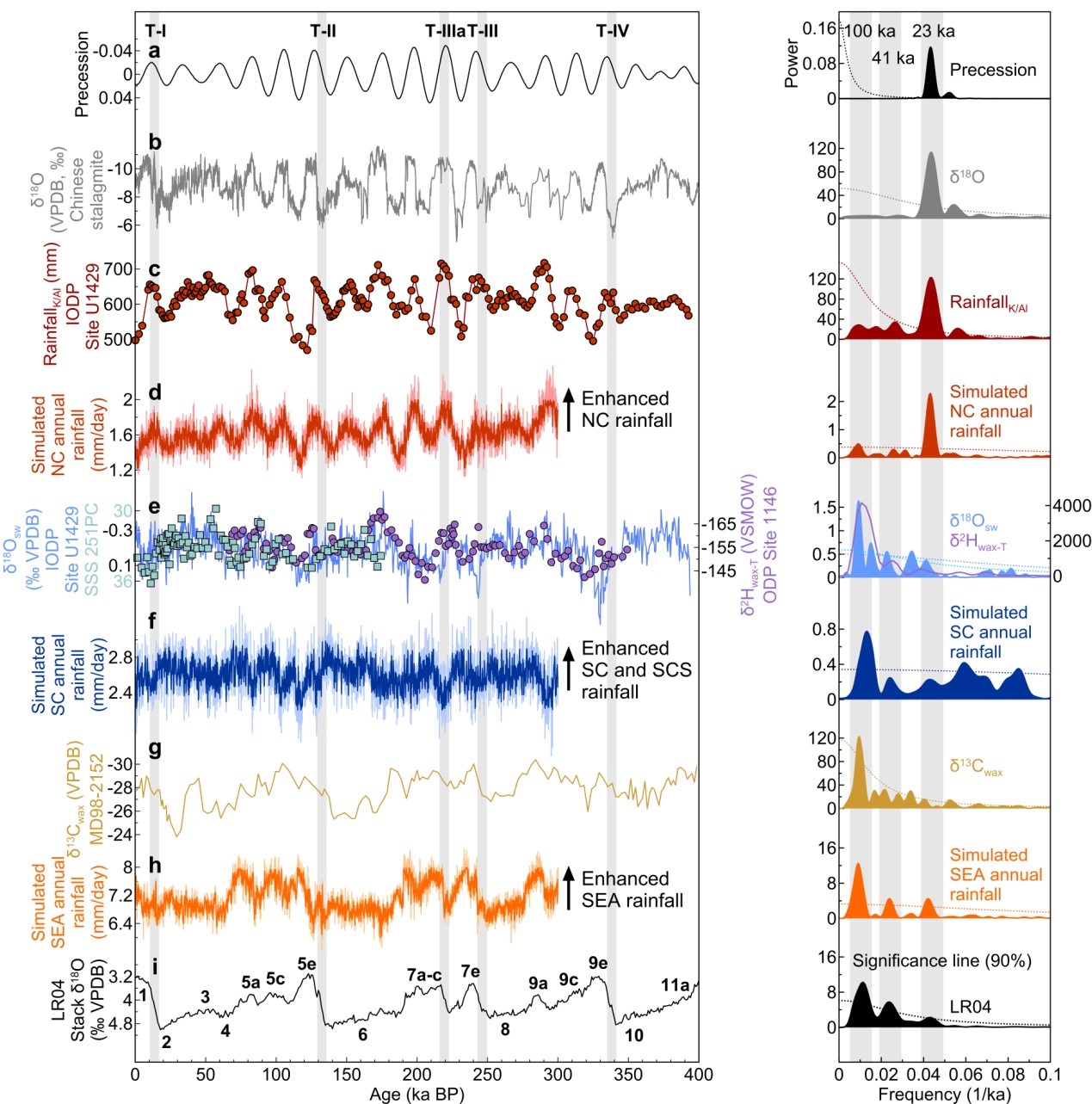 40万年以来东亚北部、南部以及东南亚西部降水演化趋势及其周期对比