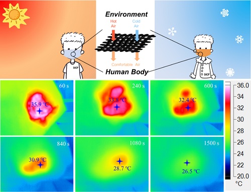 近日,中国科学院大连化学物理研究所氢能与先进材料研究部热化学研究组研究员史全团队、催化基础国家重点实验室二维材料化学与能源应用研究组研究员吴忠帅团队和澳大利亚迪肯大学陈英教授团队合作,在柔性纤维型相变材料研究方面取得新进展。合作团队通过湿法纺丝和真空浸渍制备了柔性石墨烯—氮化硼纤维基的相变无纺布,并将其用于可穿戴人体热管理器件中。该复合相变无纺布具有优异的柔韧性、储热能力、透气性能,为智能可穿戴管理器件的研究提供了新思路。