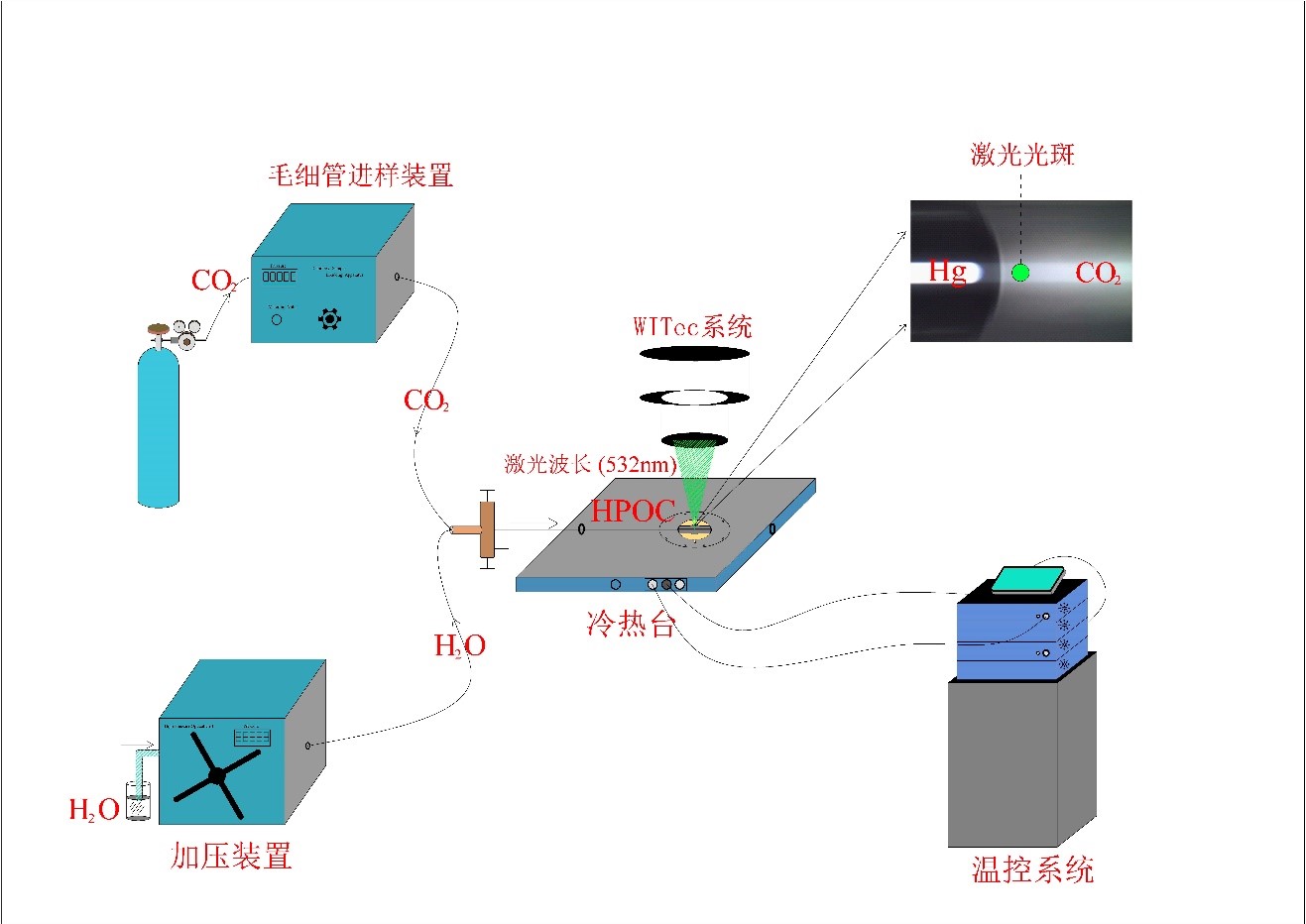 近日,中国科学院海洋研究所张鑫课题组基于共聚焦显微拉曼技术和毛细管高压透明腔(HPOC)构建了高温高压实验显微模拟装置(图1),开展了高温高压(50-450oC,50-400 bar)下高纯13CO2、12CO2及其混合物的拉曼光谱特征研究,建立了适用于高温高压环境的CO2碳同位素的拉曼光谱原位定量分析方法,相关成果近日在国际光谱学期刊《Spectrochimica Acta Part A: Molecular and Biomolecular Spectroscopy》正式发表。