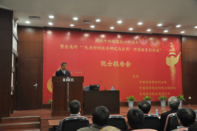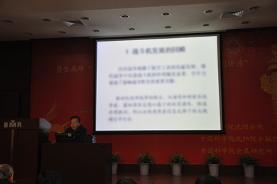 2009年10月29日,由中科院沈阳分院、中科院院士工作局沈阳院士联络处和中科院金属研究所联合举办的“庆祝中科院建院60周年暨金属所‘先进材料技术研究与应用’师昌绪系列讲座”院士报告会在金属所举行。李依依院士、叶恒强院士参加了报告会,分院机关职工、金属所科研人员和研究生等近400余人聆听了中国科学院院士李天作的题为“战斗机的发展”的报告。沈阳分院党组书记、副院长马思主持了报告会。